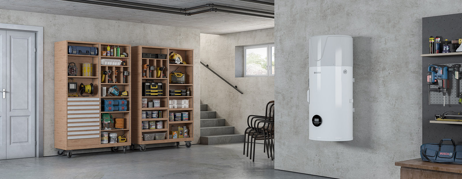 Lucht-water-warmtepomp van Olimpia Splendid waarmee op efficiënte wijze warm water kan worden geproduceerd met een GWP van bijna nul, waarbij temperaturen tot 75 °C worden bereikt.